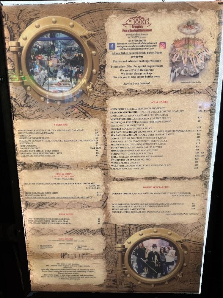 Nestled at 149 Northfield Ave, London W13 9QT, Bronek's Fish Restaurant captures the essence of a local seafood haven. The ambiance combines charm and approachability, marked by a quirky decor that reflects Bronek's dedication to the craft of seafood. This beloved spot has become a staple in Ealing, welcoming families, groups, and seafood lovers alike. Accessibility options make it easy for everyone to join in on the fun, with wheelchair-accessible entrances and seating. The family-friendly vibe ensures a hospitable experience for kids, making it a notable choice for lively gatherings. Parking is convenient, with options for free street parking. During peak hours, especially on weekends, guests should expect a bustling atmosphere filled with laughter and the sounds of sizzling seafood. Bronek's Fish Restaurant knows how to serve up an unforgettable meal in a casual, friendly setting.